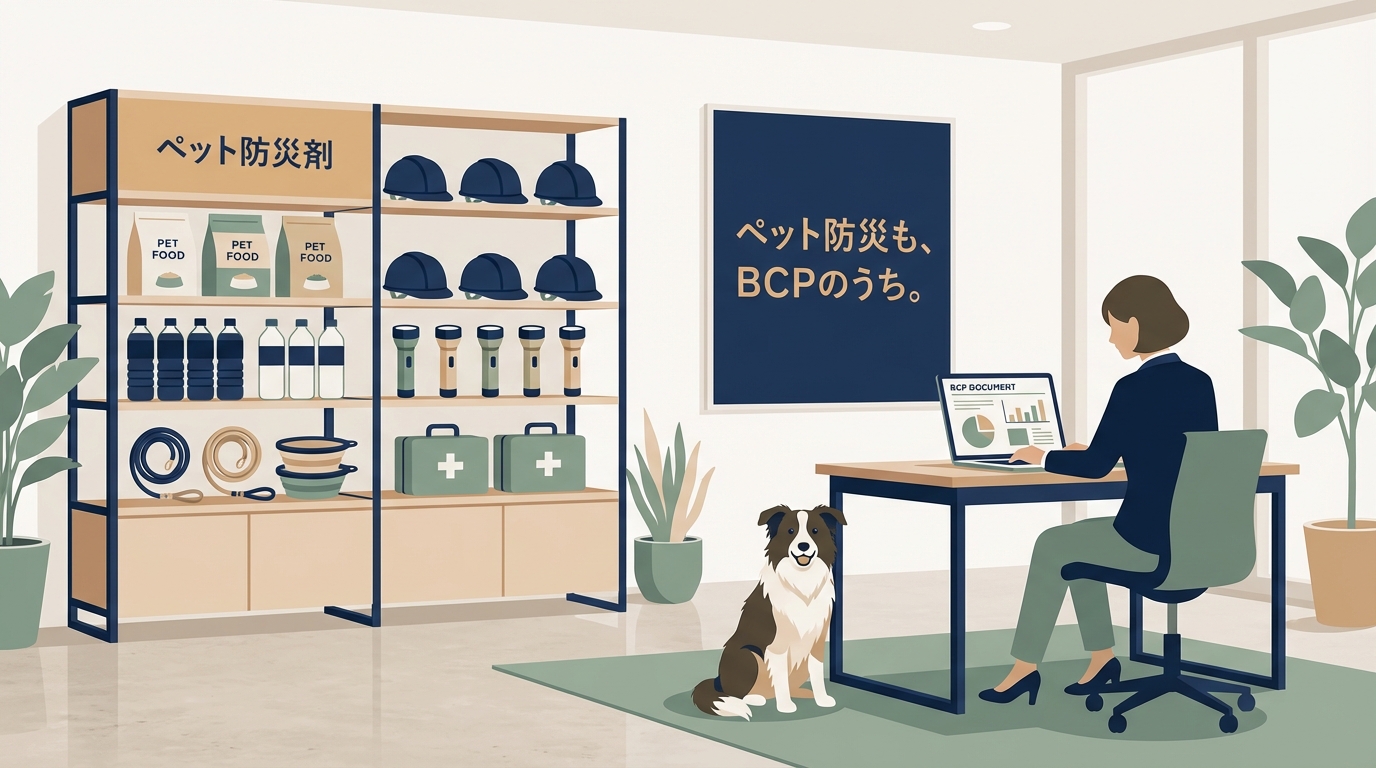 企業の防災対策は従業員の安全確保が最優先ですが、従業員の約2割がペットを飼育しているという統計を考えると、ペット飼育者への配慮はBCPの実効性に直結します。